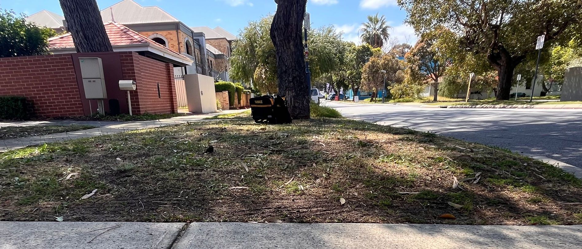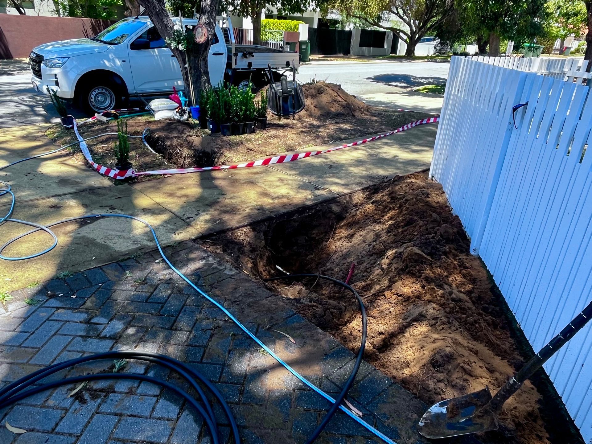 Tree roots under the pavement made water excavation with the pvc pipe challenging, and no doubt entertaining for passers by.