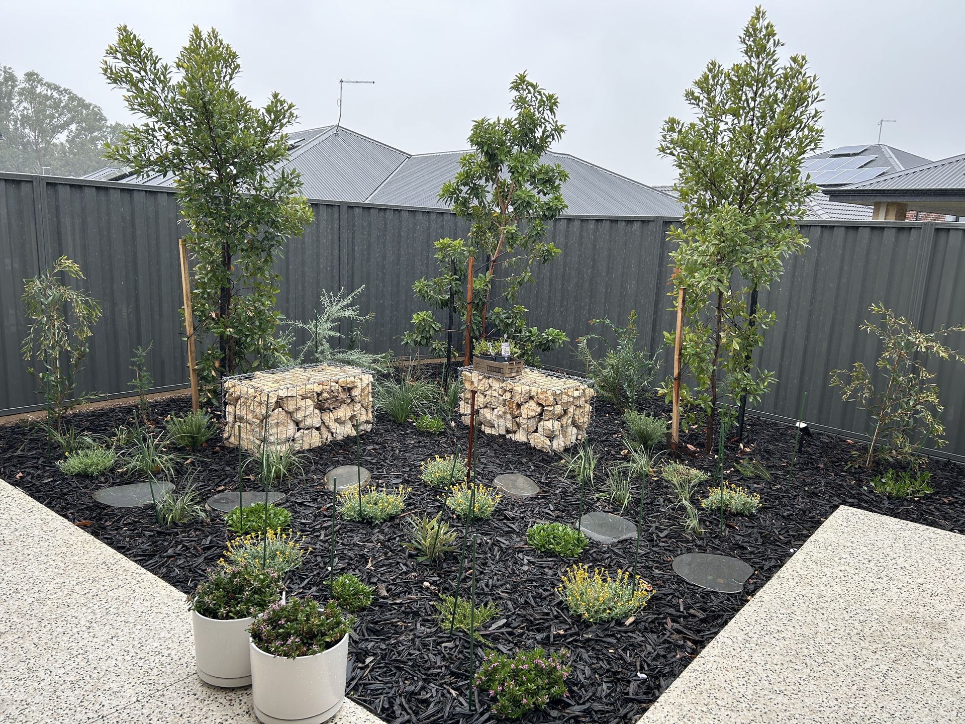 Three months in, the garden is thriving, following being planted at the height of summer. Thanks to Greenlife Soil Co and Nutrien Water for making it possible to give the plants and trees their best life. And of course Tony & Sons for the gorgeous native rainforest trees, bringing the canopy and soft setting for this happy green space.